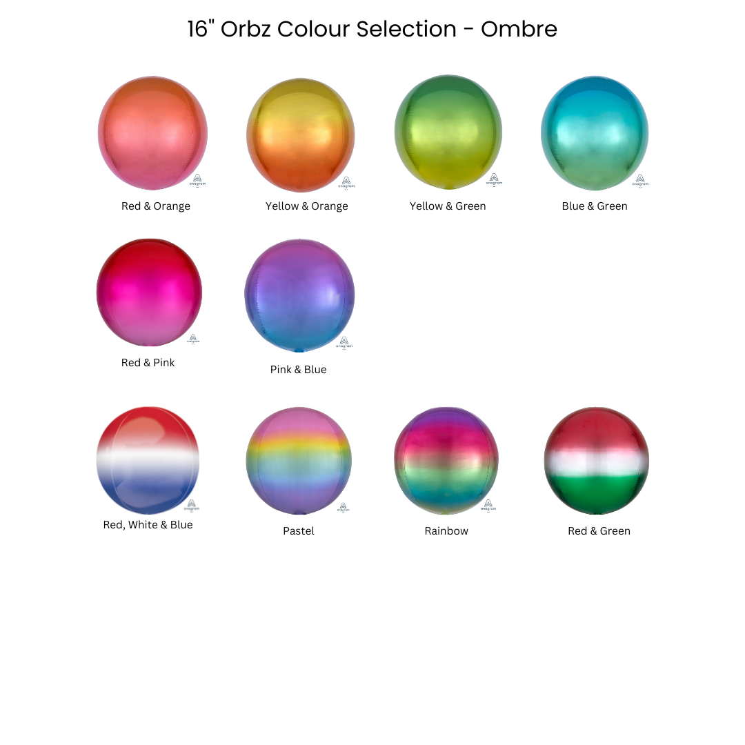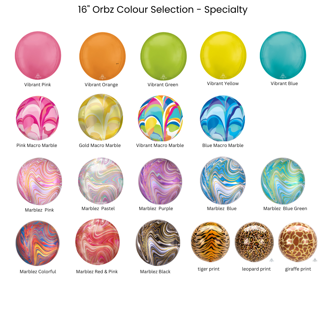 Orbz Balloon Topper (16”) – different colour options available for the orbz balloon with the option to personalize with your own custom message (extra charge).